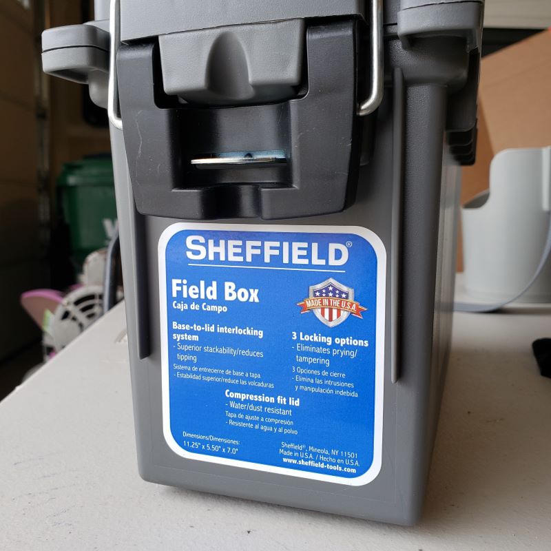 - (1) Sheffield Field Box – This box has a metal latch with a metal locking eye for a padlock. I chose this to be more secure when locked than other ammo box options.