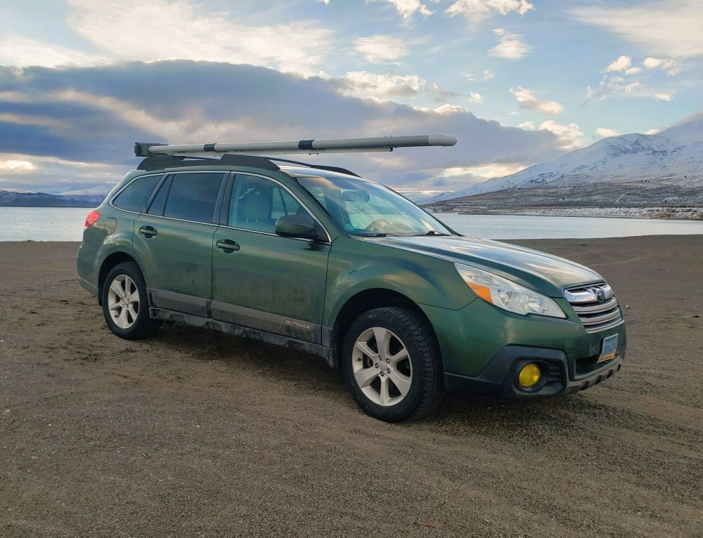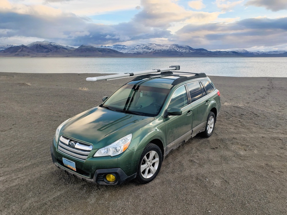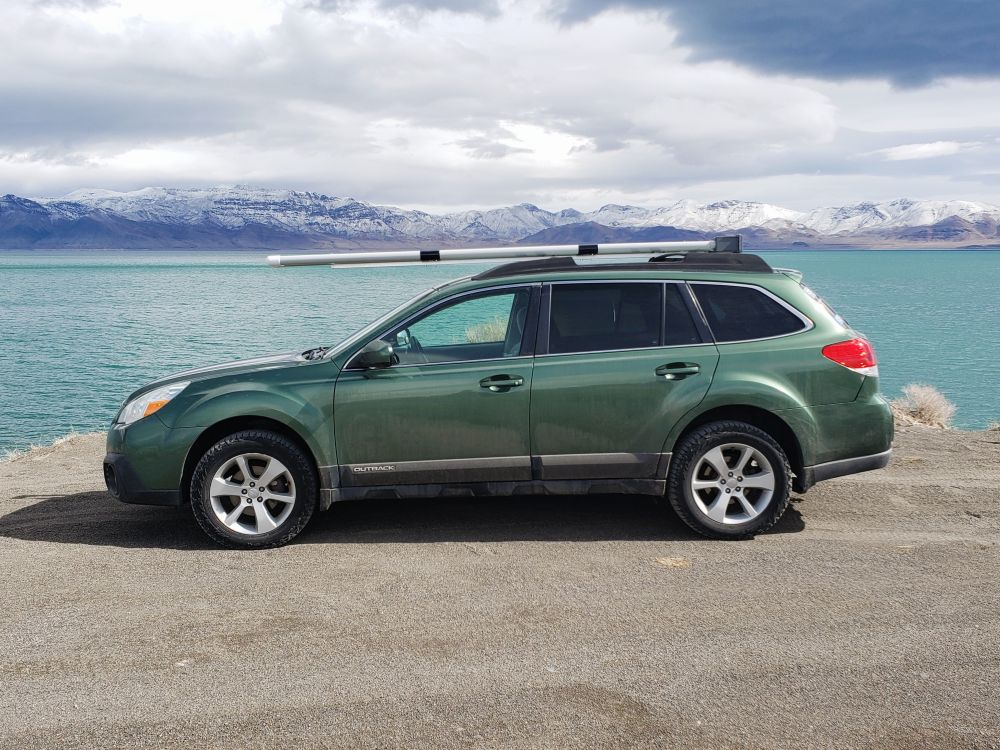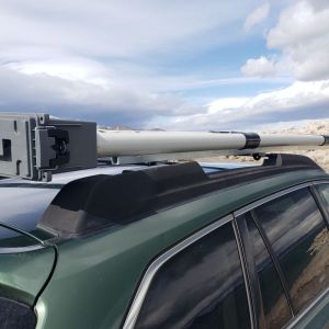 - I carefully placed the carrier sitting right side up on top of my Outback’s cross bars. I wanted to be careful to not have it too far forward, but also not too far back so as to block the hatch from opening all the way. When I found the sweet spot, I marked the frame tube with a pencil to mark where each cross bar sat.