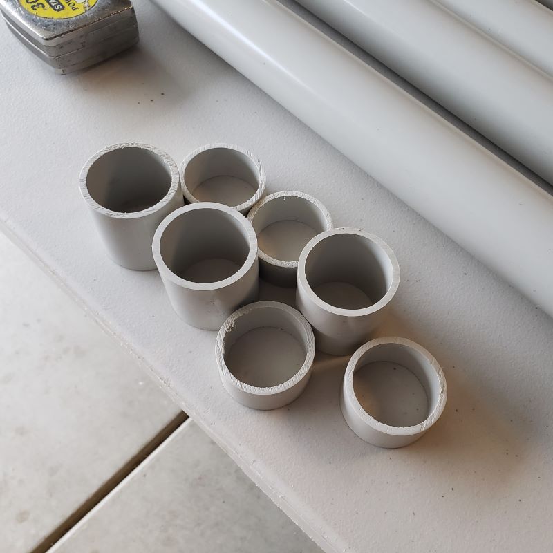 - (6) 2’’ I.D. x 40’’ sections of Formufit PVC Pipe